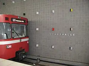Fürth Stadthalle station is a Nuremberg U-Bahn station, located on the U1 in Fürth.
