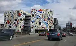 The Fair-Haired Dumbbell is a building located at 11 Northeast Martin Luther King Jr. Blvd., in Portland, Oregon's Burnside Bridgehead project in the Kerns neighborhood, United States.[1] Its exterior design was created by Los Angeles artist James Jean,[2] and was selected by the Regional Arts & Culture Council, the city, and Guerrilla Development. Dan Cohen painted the artwork in June 2017.[3]