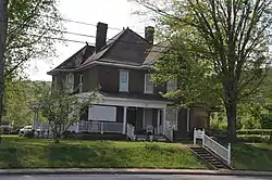 It is a two-story brick house, in Queen Anne style with elements of Free Classic substyle, based on plans of Barber & Kluttz, architects of Knoxville, Tennessee who published pattern books that were distributed widely.[2]