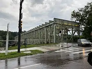 The Falls Bridge is a steel Pratt truss bridge that spans the Schuylkill River in Fairmount Park in Philadelphia, Pennsylvania. It connects Kelly (formerly East River) Drive at Calumet Street with Martin Luther King, Jr. (formerly West River) Drive at Neill Drive. It replaced a wooden covered bridge at the same site.
