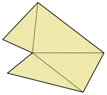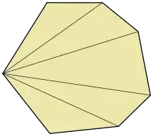 In computational geometry, a fan triangulation is a simple way to triangulate a polygon by choosing a vertex and drawing edges to all of the other vertices of the polygon. Not every polygon can be triangulated this way, so this method is usually only used for convex polygons.[1]