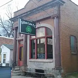 Farmers' State Bank is a historic building located in Volga, Iowa, United States. Its significance is derived from its Beaux-Arts architecture and the bank's role in the town's early 20th-century agriculture-based economy and railroad development along a branch of the Chicago, Milwaukee & St. Paul Railroad.[2] Completed in 1912, the Beaux Arts elements on the buildings main façade includes a large elliptical-arch window, Ionic granite columns, classical entablature, and circle window above the door framed by garlands. Farmers' State Bank was Volga's second financial institution. It survived the downturn in the farm economy in the 1920s before it merged with the other bank in town in 1931 to form Iowa State Savings Bank. That bank used this building until the following year when it failed. The city of Volga acquired the building in 1935 and used it for its public library and city hall. It was used for a bank again from 1947 to 2015 when it housed Volga State Bank and the Volga branch of Central State Bank of Elkader. The building then housed a law office. It was listed on the National Register of Historic Places in 2018.[1]