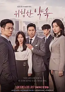 Fatal Promise (Korean: 위험한 약속) is a 2020 South Korean television series starring Park Ha-na, Go Se-won, Kang Sung-min and Park Young-rin.[1][2] The Mega Monster-produced series, directed by Kim Shin-il and written by Ma Ju-hee, revolves around revenge of a girl who was unjustly sacrificed, by a man to save his family in exchange for injustice and compromise to reality.[3] The daily drama was premiered on KBS2 on March 30, 2020 and aired every weekday at 19:50 (KST) till August 28, 2020.[4][5]