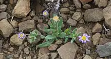 Felicia namaquana is a glandular-hairy, branching annual plant of up to 25 cm (10 in) high that is assigned to the family Asteraceae.[2] It is sometimes called Bloublommetjie or pers poublom in Afrikaans. Flowering occurs between May and October. It grows in Namibia and South Africa.[3][4]