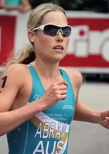 ![]() Felicity Abram at the World Championship Series triathlon in Kitzbühel, 2010 | |