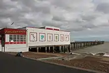 In August 2017, a new £3 million pier and building opened to visitors[1] with the official opening in October 2017, as part of a wider regeneration scheme for the area.[8] The new structure includes a bowling alley, arcade machines and wraparound boardwork.[1] The pier decking extending over the sea remained; however due to safety concerns, visitors are not able to walk the entire length[6] which has been inaccessible since around 1999[9] due to corrosion and rotten timber beams supporting the pier deck.[7] The original plan involved demolishing this section of pier until an alternate proposal to retain it was put forward.[11]