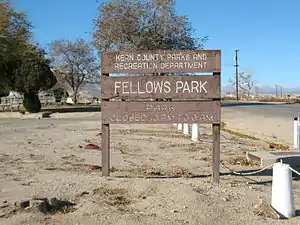 Fellows developed as an oil boomtown after the 1909 discovery of the Midway Gusher.[4] The first post office at Fellows opened in 1910.[3] The name Fellows honors Charles A. Fellows, a Sunset Western Railroad contractor.[3]