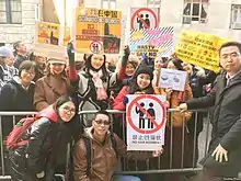 This organization was established in 1949 to protect women's rights and represent their interests. Scholar Qi Wang explains this all female non-governmental organization in a feminist context where women were finally challenging the government's tighter control on social organizations.[106] These were feminist modes of protests, in private and public spaces, that contributed to the introduction of new generational changes to resist inequalities. Other organizations in China, such as the Human Rights Watch, addresses that the ACWF "is promoting a damaging narrative about women's subservience in an attempt to fix social issues".[107] Since the head positions of the ACWF are appointed by the Chinese Communist Party, women who hold positions of leadership do not necessarily represent the interests of Chinese women, because they are not elected by the people, but appointed by the party/state.[108] Local women's federations have also long lacked the power to act, causing local women's rights to face unreformed institutional problems such as political marginalization, bureaucracy, and poor implementation, which has hindered the further development of national feminism in China.[109]