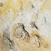 | Other | Microsparry calcite matrix Inoceramus shells and fragments Yellow, orange, or brown stainings and nodules of Limonite |