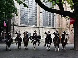 A regiment of trumpeters on horseback perform in Domplein, the square in the ruins of St. Martin's Cathedral.