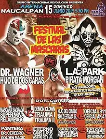 Festival de las Máscaras (2014) (Spanish for "Festival of the Mask") was an annual professional wrestling major event produced by Mexican professional wrestling promotion International Wrestling Revolution Group (IWRG), which took place on June 15, 2014 in Arena Naucalpan, Naucalpan, State of Mexico, Mexico. For this annual event IWRG has gotten special permission from the "Comisión de Box y Lucha Libre Mexico D.F." (Mexico City Boxing and Wrestling Commission) to allow wrestlers who had previously been unmasked after losing a Luchas de Apuestas, or bet match, to wear their masks again for this show only. The event also celebrated the career of Dos Caras, father of IWRG Intercontinental Heavyweight Champion El Hijo de Dos Caras.