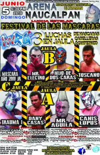 - 1 2 3 4 5 6 7 8 Mejía Eguiluz, Diego (June 6, 2016). "Tres luchas en jaula en el Festival de las Máscaras, y Toscano rapa a Danny Casas". The Gladiatores (in Spanish). Retrieved June 6, 2016.
