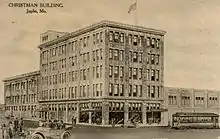 The building was designed by August and Alfred Michaelis and is an example of the Chicago style of curtain-wall architecture.[4] The Christman Dry Goods Company, which was first founded in 1890 by Peter A. Christman and Edmund Bliedung as Christman and Bliedung but renamed Christman Dry Goods Company in 1903,[5] remained in the building until 1954 when R.H. Macy & Co. Inc. purchased the business and all its fixtures from the Christman family, though the Christman's did retain ownership of the building.[6] For a short time Macy's operated the store under the Christman name, but within two years they had branded the location with the Macy's moniker. On January 8, 1976 Macy's closed its Joplin store, leaving the Christman Building vacant for the first time in its 59-year history.[7] The Christman family, who still owned the building, then leased the building and the family name to Gregg Athy and Richard Roberds, both former Macy's employees. Athy and Roberds opened the new Christman's Department Store in the building on October 7, 1976,[8] but the business closed after only a few years. Eventually Hugh and Lee Anne Howsman purchased the building to house their Howsman's Office Supply and Furniture Co.[9] Over time Howsman's business plan changed and in 2006 they sold the building to the Matt Miller Co. of Springfield, Missouri,[10] who redeveloped the upper stories into lofts and restored the main floor into an events space.