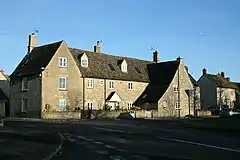 Filkins has a public house, the Five Alls.[6] The village has an outdoor swimming pool owned by the Centre Trust which was established by Sir Stafford Cripps under the control of the parish council (acting as trustees). The pool, now managed by the Filkins Swimming Club, is open from May until September. Next to it are the village shop, post office and bowls club. A large 18th-century barn is now the premises of Cotswold Woollen Weavers, which set up business there in 1982, and is the last company in the area to uphold the traditions of woollen cloth design and manufacture.[7] Filkins has a theatre club. The former village school is now a pre-school nursery.[8]