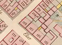 Friborg's property was home to 15 residents at the 1787 census. The 40-year-old owner resided on the ground floor with his wife Magrethe Sophie (née Horn), their four children (aged three to nine), one lodger ( Johan Christian Bentzen, aged seven), two apprentices and three maids.[3] Egert C. S. Randrup, a 23-year-old student, resided alone on the first floor.[4] Kari Ivarsdatter Horn (née Bachevold, 1724–1807), Friborg's mother-in-law, resided on the second floor with one maid.[5]