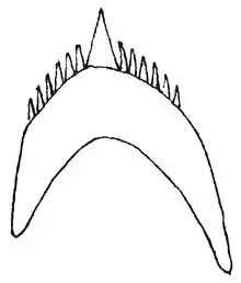 ![]() Drawing of a single denticle of Fiona pinnata. |