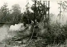 Firemen fighting the forest fire near Eschede