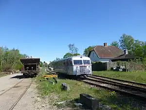 The diesel railcar LNJ SM 13 at Firhøj Station during a special trip with railway entusiasts.