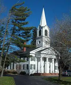 First Church of Evans Complex is a historic Presbyterian church complex located at Derby in Erie County, New York. The 5.5-acre (2.2 ha) property includes the church, cemeteries, farmhouse (manse), and historic Ingersoll barn with later additions that serves as a community clubhouse. The church is an eclectic Colonial Revival style structure designed by Buffalo architects Mann and Cook and constructed in 1915. The original cemetery includes graves that predate the congregation's founding in 1818.[2]
