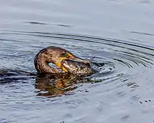 - ↑ Research by Lithuanian scientists in the Curonian Lagoon suggests that cormorants do not compete with commercial fishermen as much as they are believed to, due to the limited range of fish preferred by the cormorants and other bird species that prey on them.[20] Italian researchers also found that cormorants on Lake Como and smaller lakes nearby concentrated on species not in great commercial demand.[21]