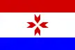 | Design | A horizontal tricolor of red, white and blue with an eight-pointed red cross. |