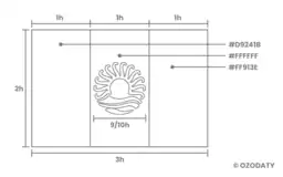 | Design | Red, white and green tricolor (colors of Iranic people), with a sun with twelve rays in the centre and the sea just below |