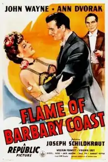 Flame of Barbary Coast is a 1945 American musical-drama film starring John Wayne, Ann Dvorak, Joseph Schildkraut, William Frawley, and Virginia Grey. The movie was scripted by Borden Chase and directed by Joseph Kane.[1][2]