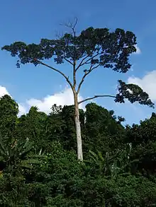 As in any tropical rainforest Singapore is home to a number of very large trees from the families Apocynaceae, Dipterocarpaceae, Fabaceae, Malvaceae and others. A number of these thrive reasonably, but for the large Shorea gratissima there's a problem - seeds won't germinate, and the reason for this is not known.[2]