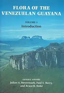 Flora of the Venezuelan Guayana is a multivolume flora describing the vascular plants of the Guayana Region of Venezuela, encompassing the three states south of the Orinoco: Amazonas, Bolívar, and Delta Amacuro. Initiated by Julian Alfred Steyermark in the early 1980s, it was completed after his death under the guidance of Paul E. Berry, Kay Yatskievych, and Bruce K. Holst. The nine volumes were published between 1995 and 2005 by Timber Press and Missouri Botanical Garden Press.[1] The project brought together more than 200 botanists from around the world and was "the first effort to produce a comprehensive inventory and identification guide for the plants of such an extensive region of northern South America".[2]