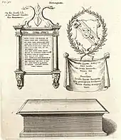 Drawing by Wenceslaus Hollar of the tomb and memorial to James and his wife Constance Enyon in St Margaret's Church, Hunnington