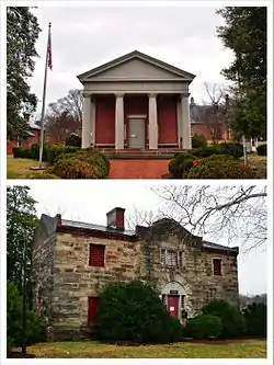 ![]() Two of the contributing buildings, the county courthouse (top) and the stone jail (bottom) in January, 2014. | |