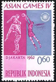 Football at the 1962 Asian Games on a stamp of Indonesia