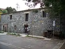 The opening of Forbes Mill was an auspicious moment in the history of the Santa Clara Valley. Built on the site of a Mexican ranch, the mill represented the shift of land ownership from the Californio Dons to the new settlers arriving after the Mexican–American War.[3] The first three stories of the mill were built of stone quarried from the Los Gatos Canyon. The top story was wood, cut from trees in the mountains above Los Gatos. In 1880, an annex was attached to the north wall of the mill building. The town that grew around this building was first called Forbes Mill, then Forbestown, and finally Los Gatos.