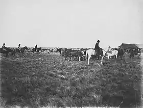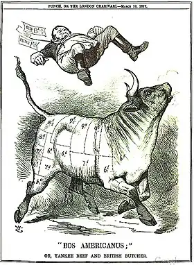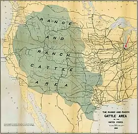 Nearly all American livestock exports went to England.[88] Americans sent livestock to England because they had a surplus that could not be absorbed by local demand. When, eventually, it was, which happened by 1913,[89] exportation ceased.[90] Writing in 1915, two senior American officials said: "Our beef surplus has vanished and our own people now require all that our farms and ranches produce".[91]