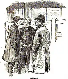 Drovers at Deptford market were paid a lump sum per vessel, George Philcox told Booth.[48] They could unload a cattle boat in as little as 15 minutes.[37] Some cattle, especially from Argentina, were very wild, and were best given "a wide berth".[56] A man in regular employment could earn as much as £4 a week[27] (about £520 purchasing power in 2018 money).[57]