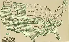 Stockmen found profitable the exportation of only the choicest grade cattle and attained this quality by upgrading the range-stock with Shorthorn and Hereford blood... The trade therefore became a factor in improving the quality of American cattle.[95]