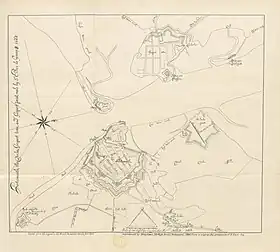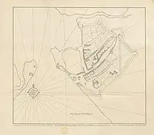 The first true fortification of the dockyard was constructed between 1665 and 1668 although there had previously been a wall around it.[24] The fortification consisted of an earthen rampart with a single bastion and two demi-bastions.[24]