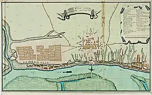 In the 1740s there arose the need to build a more powerful fortification on the Don for the protection of Temernitskaya Customs, rather than the existing Fortress of Saint Anna. In 1744, Captain Sipyagin reported on the choice of a place for the construction of fortifications near the Rich Well tract. The Senate rejected the first seven projects, but when two other projects (stone and earth fortifications) were approved, the garrison of the fortress of St. Anna was transferred to a new place on 20 December 1760. On 6 April (17 April New Style) 1761, the Empress Elizaveta Petrovna issued the decree which granted fortress the name of Saint Dmitry of Rostov.[2] On 23 September of the same year took place the laying of its foundations.[3][4] The construction works were carried out under the leadership of military engineer General Alexander Rigelman.