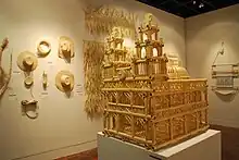 Cathedral-style bird cage made by the artisan's son, Miguel Moreno Jacinto on display at the Museo de Arte Popular