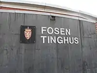 Fosen District Court (Norwegian: Fosen tingrett) was a district court in Trøndelag county, Norway. The court was based at the Fosen Tinghus in the town of Brekstad in the municipality of Ørland. The court existed from 1591 until 2021. It had jurisdiction over the municipalities of Ørland, Bjugn, Frøya, Hitra, Indre Fosen, Osen, Roan, and Åfjord. Cases from this court could be appealed to Frostating Court of Appeal.[1][2] The court was last led by the acting chief judge (Sorenskriver) Leif Otto Østerbø. This court employed a chief judge, two other judges, and several prosecutors and administrators.[3]