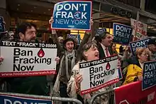 Anti-fracking campaigners, including Greenpeace, have said that fracking is the Department of Energy's attempt to distract from investment in renewable energy.[84] This is because the natural gas industry is encouraging continued reliance on fossil fuels, which they claim boosts the economy through its exports and job opportunities.[85]