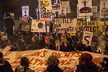Critics of pipeline transport of oil cite environmental and land rights issues. Protests over the Keystone XL Pipeline beginning in 2011[54] and Dakota Access Pipeline have expressed these same concerns. Native peoples have been active protesters. The Standing Rock Sioux of South Dakota opposed the construction plans of the Dakota Access Pipeline because it ran through a symbolically significant area, and expressed concern that it could compromise their source of drinking water.[55] Since pipelines have been built, multiple pipeline accidents have occurred, resulting in oil spills and the contamination of the surrounding environment. The tribe was also not involved in planning the route for the pipeline.[56] These protests also reflect the ongoing struggle for Native American recognition in the United States. In November 2015 President Barack Obama called to stop construction of the Keystone XL Pipeline.[53] In December 2016 the Army Corps of Engineers prevented further construction on the pipeline near the Standing Rock Reservation.[57] On January 24, 2017 President Donald Trump signed an executive order permitting the completion of both the Keystone XL Pipeline and Dakota Access Pipeline.[51] On March 24, 2017 the permit was granted.[58]