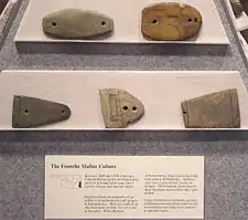 The Fourche Maline culture (pronounced foosh-ma-lean)[lower-alpha 1] was a Woodland Period Native American culture that existed from 300 BCE to 800 CE,[2] in what are now defined as southeastern Oklahoma, southwestern Arkansas, northwestern Louisiana, and northeastern Texas. They are considered to be one of the main ancestral groups of the Caddoan Mississippian culture, along with the contemporaneous Mill Creek culture of eastern Texas.[3] This culture was named for the Fourche Maline Creek, a tributary of the Poteau River.[lower-alpha 2] Their modern descendants are the Caddo Nation of Oklahoma.