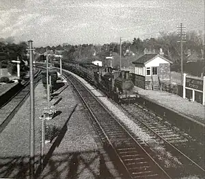 Foxrock station was opened by the Dublin, Wicklow and Wexford Railway (DW&WR) in 1861, as part of the Harcourt Street line.[1] A temporary platform had been provided there in 1859, before the complete station was finished in 1861. The station opened as "Foxrock and Leopardstown" and retained that name until 1921, when it was shortened to Foxrock.