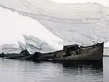 The wreck of the whaling factory ship Guvernøren in Foyn Harbor.