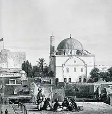 From Cairo, the delegation traveled by land to Jerusalem, where they stayed from December 11 to 14, 1839.[1] During these days, Fesque photographed Jerusalem from the Mount of Olives, including the Temple Mount, the city walls, and its surroundings.[13][14] From Jerusalem the expedition continued to Acre, where Fesque photographed the old city on its rooftops, the people staying there, and the Crusader fortress in the background. Finally, he photographed the city of Nazareth and its surroundings. From Nazareth, the delegation continued to Damascus, Turkey, and returned to Paris at the beginning of 1840.