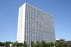 The 17-storey building is 55 metres (180 ft) high. The hospital occupies the bottom five floors; the rest are residential.