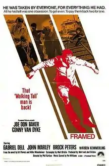 Framed is a 1975 American crime neo noir film directed by Phil Karlson and starring Joe Don Baker[1] and Conny Van Dyke.[2] It was the final film of Karlson's Hollywood career.