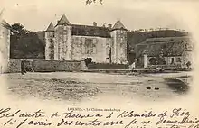 - Nicholas-Marie Renaud d'Avène des Meloizes (1696-1743), Comte des Meloizes and Chevalier de St Louis.[5] In 1722, he married Angelique Chartier de Lotbinière (1692-1772), daughter of René-Louis Chartier de Lotbinière and the sister of his brother-in-law, Eustache. Their son, Nicolas Renaud d'Avene des Meloizes-Fresnoy (1729-1803), sold the Seigneury of Neuville for 45,000 Livres and moved to France where he became the Marquis de Fresnoy through his marriage to the heiress Agathe-Louise de Fresnoy, a descendant of Gaspard II de Coligny, at Château de Fresnoy. Their daughter, Angelique-Genevieve d'Avene des Meloizes (1722-1779) is the subject of Nadine Grelet's book, La Belle Angelique (2003) and one of the two central figures in The Golden Dog (1873). She was married to Michel-Jean-Hugues de Pean, but was better known for her affair with François Bigot.