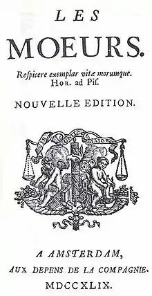 Title page of "Les Mœurs" (1748) by François-Vincent Toussaint